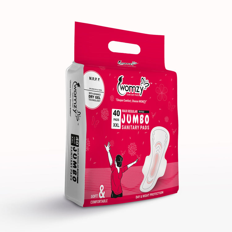 Womzy XXXL Maxi Cottony Jumbo Sanitary Pads With Advance Dry Gel Technology Sanitary Pad (Pack of 40)